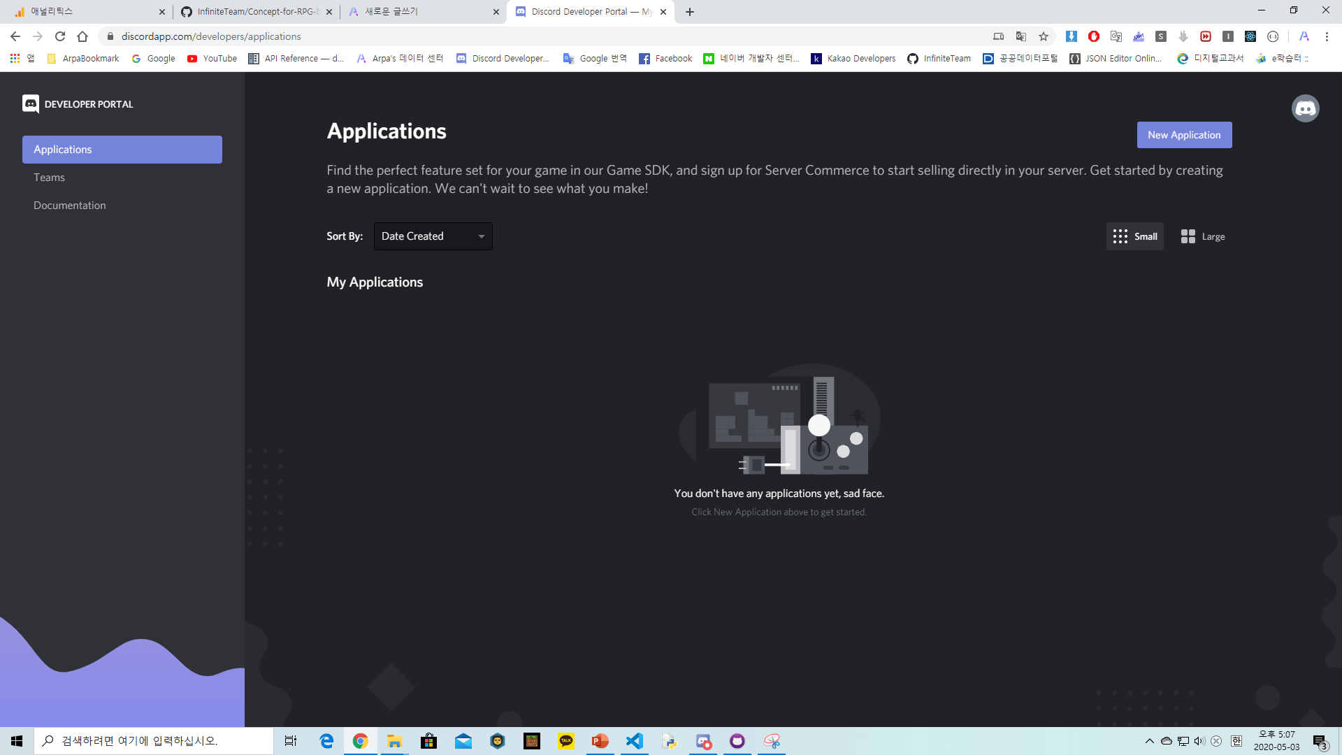 디스코드 봇을 만드려면, 우선 애플리케이션을 디스코드에 등록해야합니다.